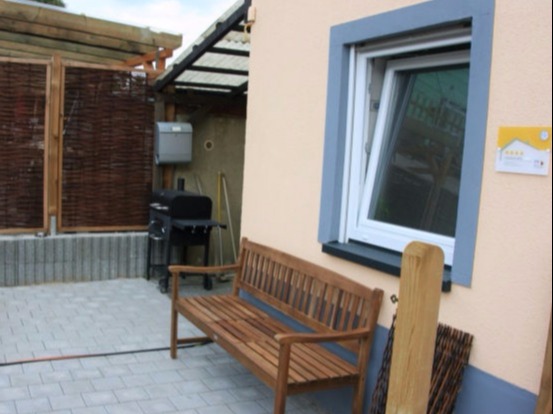 heeft een zithoek, ligstoel en een typisch duitse zwenk barbeque voor de traditionele schwenkbraten of worstjes