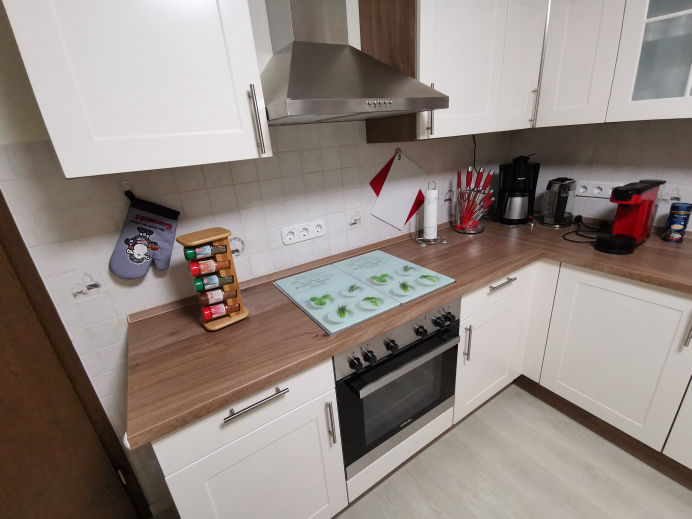 De keuken is top uitgerust met alles wat U nodig heeft voor het koken. Ook nog een eettafel met 4 stoelen.